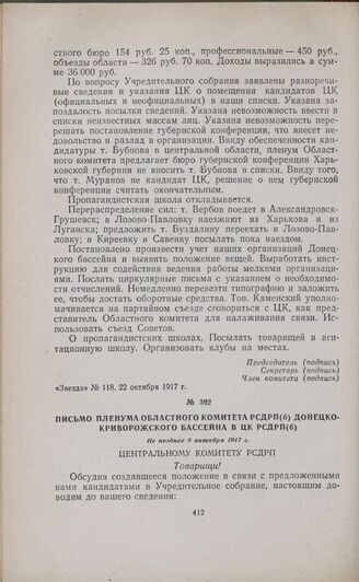 Письмо пленума областного комитета РСДРП(б) Донецко-Криворожского б...