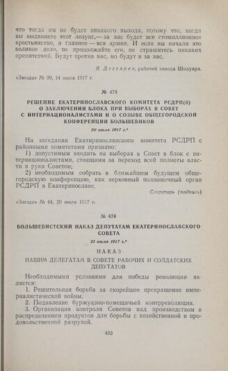 Большевистский наказ депутатам Екатеринославского Совета. 21 июля 1917 г.