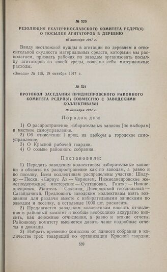 Резолюция Екатеринославского комитета РСДРП(б) о посылке агитаторов в деревню. 16 октября 1917 г.