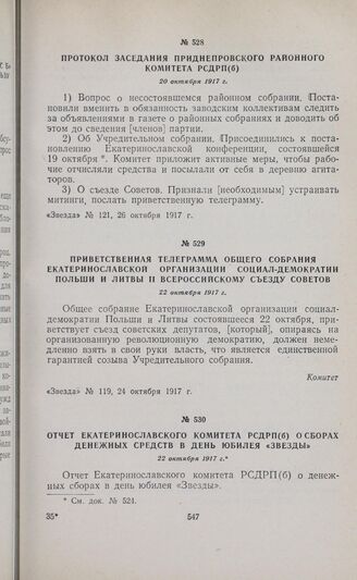 Отчет Екатеринославского комитета РСДРП(б) о сборах денежных средств в день юбилея «Звезды». 22 октября 1917 г. // «Звезда», № 118, 22 октября 1917 г.