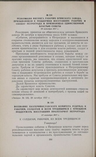 Воззвание Екатеринославского комитета РСДРП(б) к рабочим, солдатам и всем трудящимся с призывом поддержать восставший пролетариат Петрограда. 27 октября 1917 г. // «Звезда», № 122, 27 октября 1917 г.