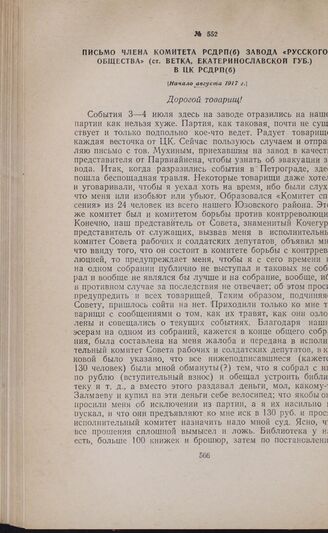 Письмо члена комитета РСДРП(б) завода «Русского Общества» (ст. Ветк...