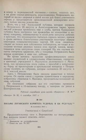 Письмо Луганского комитета РСДРП(б) в ЦК РСДРП(б). 6 сентября 1917 г. // Архив Института марксизма-ленинизма, ф. 17, оп. 1, ед, хр. 277, л. 4. Подлинник.