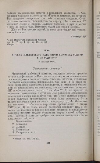 Письмо Макеевского районного комитета РСДРП(б) в ЦК РСДРП(б). 6 окт...