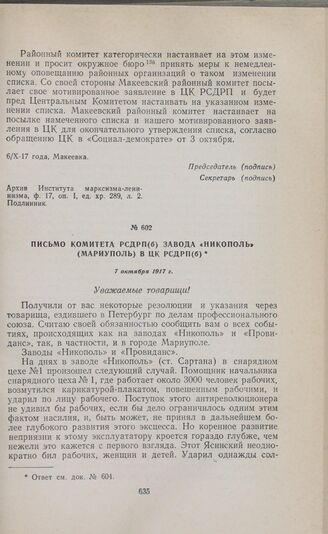 Письмо комитета РСДРП(б) завода «Никополь» (Мариуполь) в ЦК РСДРП(б...