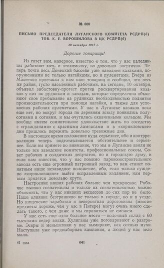 Письмо председателя Луганского комитета РСДРП(б) тов. К.Е. Ворошилова в ЦК РСДРП(б). 10 октября 1917 г.
