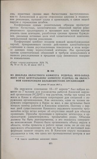 Из доклада областного комитета РСДРП(б) Юго-Западного края Центральному Комитету РСДРП(б) об областной конференции большевистских организаций. Не ранее 25 июля 1917 г.