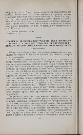 Резолюция Киевского центрального бюро профессиональных союзов с протестом против уничтожения демократических свобод и преследования большевиков. 2 августа 1917 г.