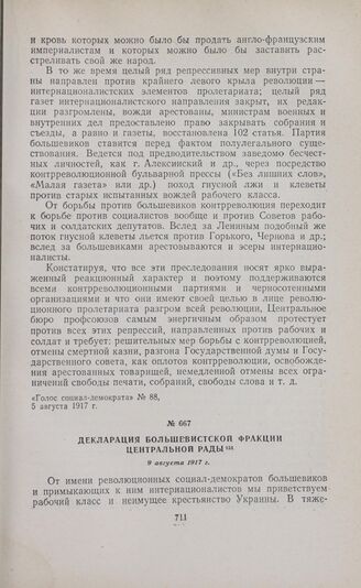Декларация большевистской фракции Центральной рады. 9 августа 1917 г. // «Голос социал-демократа», № 90, 20 августа 1917 г.