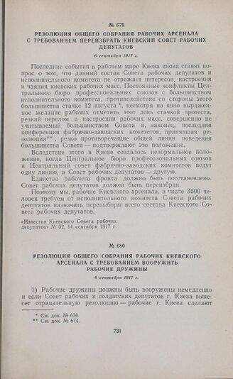 Резолюция общего собрания рабочих арсенала с требованием переизбрать Киевский Совет рабочих депутатов. 6 сентября 1917 г. // «Известия Киевского Совета рабочих депутатов», № 32, 14 сентября 1917 г.
