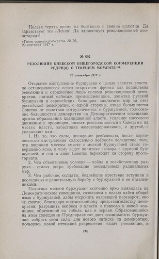Резолюция киевской общегородской конференции РСДРП(б) о текущем моменте. 25 сентября 1917 г. // «Голос социал-демократа», № 96, 29 сентября 1917 г.