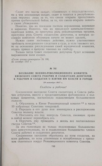 Воззвание Военно-Революционного комитета Киевского Совета рабочих и солдатских депутатов к рабочим и солдатам о взятии им власти в городе. 29 октября 1917 г. // Жур. «Коммунар», № 13. 1924 г., стр. 61.