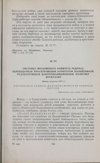 Листовка Московского комитета РСДРП(б), переизданная Проскуровским комитетом большевиков, разоблачающая контрреволюционную политику буржуазии. [Конец августа 1917 г.]