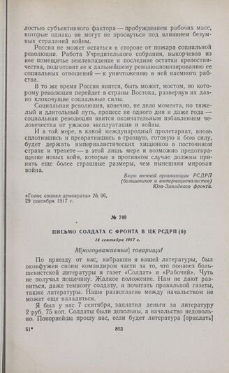Письмо солдата с фронта в ЦК РСДРП(б). 14 сентября: 1917 г.