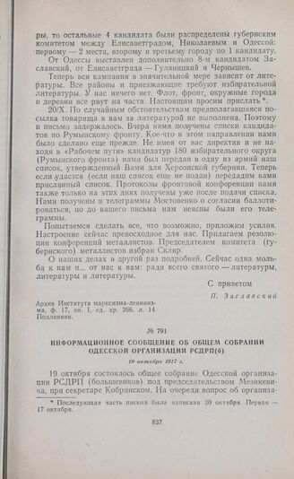 Информационное сообщение об общем собрании Одесской организации РСДРП(б). 19 октября 1917 г. // «Голос пролетария», № 24, 21 октября 1917 г.