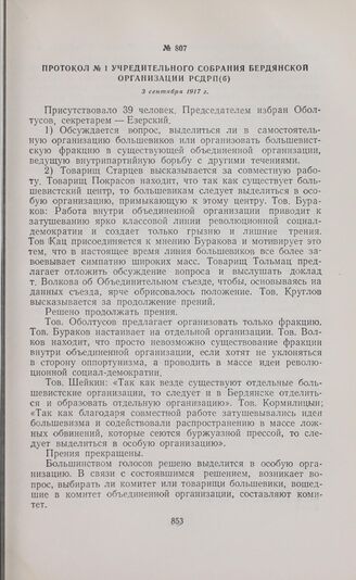 Протокол № 1 учредительного собрания Бердянской организации РСДРП(б). 3 сентября 1917 г.