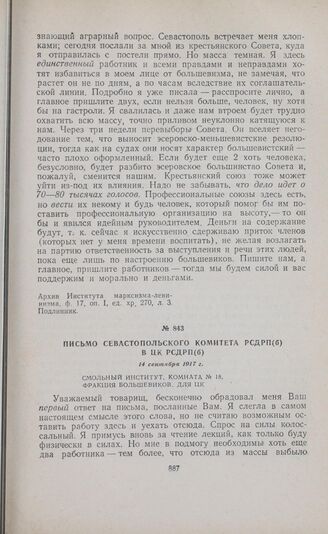 Письмо Севастопольского комитета РСДРП(б) в ЦК РСДРП(б). 14 сентября 1917 г.