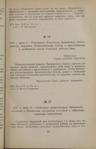 1917 г. июня 6. — Сообщение управляющего Эриванской епархией в Эриванский губернский исполком о забастовке служащих консистории // ЦГА Арм. ССР, ф. 119, оп. 1, д. 14, л. 2. Подлинник.