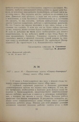 1917 г. июля 16. — Приветствие газеты «Социал-демократ» (Баку) газете «Нор кянк»