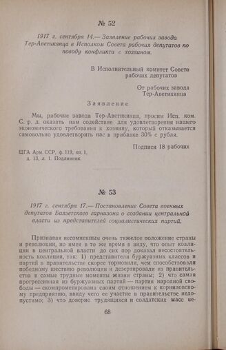 1917 г. сентября 14. — Заявление рабочих завода Тер-Аветикянца в Ис...