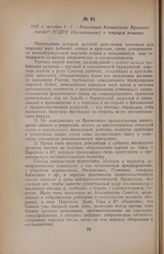 1917 г. октября 2—7. — Резолюция Кавказского Краевого съезда РСДРП (большевиков) о текущем моменте // «Резолюции Кавказского Краевого съезда РСДРП (большевиков), заседавшего 2—7 октября 1917 г. в г. Тифлисе». Изд. Кавказского Краевого Комитета РСДРП(б), стр. 3—4.