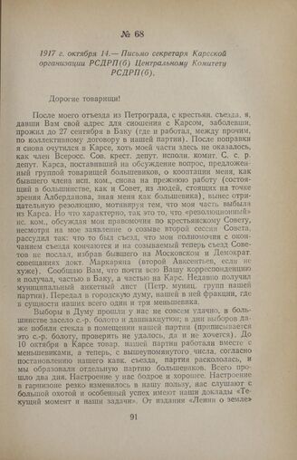 1917 г. октября 14. — Письмо секретаря Карсской организации РСДРП(б...
