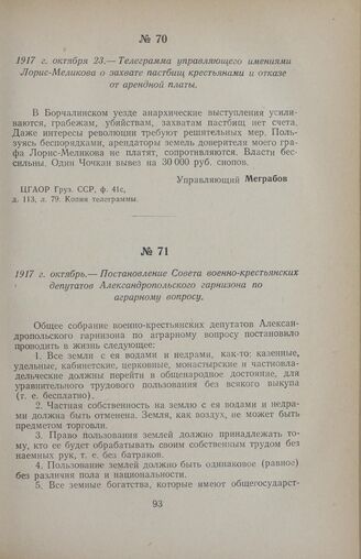 1917 г. октябрь. — Постановление Совета военно-крестьянских депутатов Александропольского гарнизона по аграрному вопросу