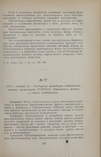 1917 г. октября 25. — Сообщение президиума конференции военных организаций РСДРП(б) Кавказского фронта о созыве конференции // Газета «Кавказский рабочий», № 182, 25 октября 1917 г.