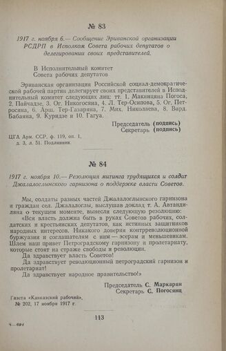 1917 г. ноября 6. — Сообщение Эриванской организации РСДРП в Исполком Совета рабочих депутатов о делегировании своих представителей // ЦГА Арм. ССР, ф. 119, оп. 1, д. 3, л. 51. Подлинник.