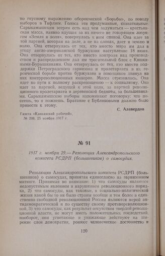1917 г. ноября 29. — Резолюция Александропольского комитета РСДРП (...