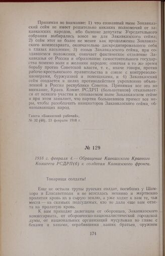 1918 г. февраля 4. — Обращение Кавказского Краевого Комитета РСДРП(б) к солдатам Кавказского фронта