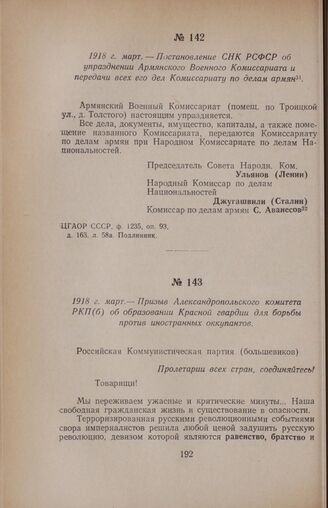 1918 г. март. — Постановление СНК РСФСР об упразднении Армянского Военного Комиссариата и передачи всех его дел Комиссариату по делам армян