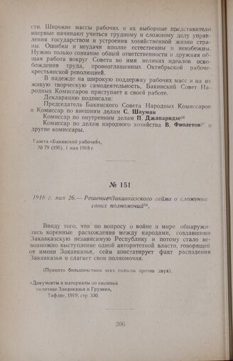 1918 г. мая 26. — Решение Закавказского сейма о сложении своих полномочий