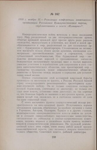 1918 г. ноября 15. — Резолюция конференции закавказских организаций Российской Коммунистической партии, опубликованная в газете «Коммуна»