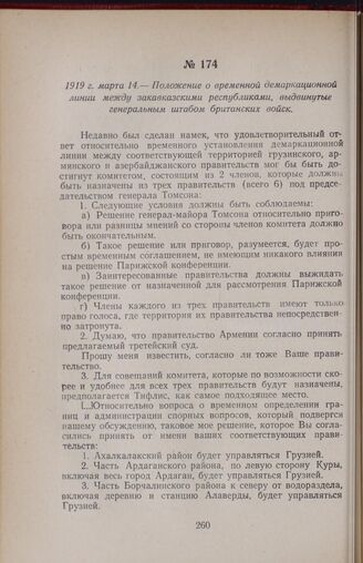 1919 г. марта 14. — Положение о временной демаркационной линии между закавказскими республиками, выдвинутые генеральным штабом британских войск