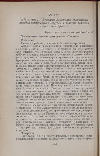 1919 г. мая 1. — Воззвание Эриванской организации молодых коммунистов «Спартак» к рабочим, солдатам и крестьянам Армении
