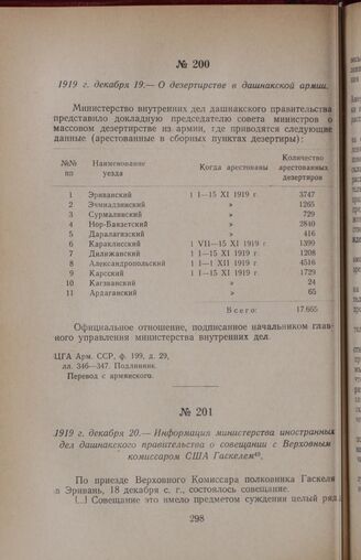 1919 г. декабря 20. — Информация министерства иностранных дел дашнакского правительства о совещании с Верховным комиссаром США Гаскелем // ЦГА Арм. ССР, ф. 200, д. 423, лл. 1—2. Подлинник.