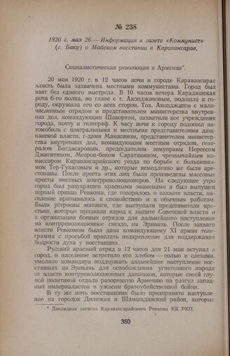 1920 г. мая 26. — Информация в газете «Коммунист» (г. Баку) о Майском восстании в Каравансарае