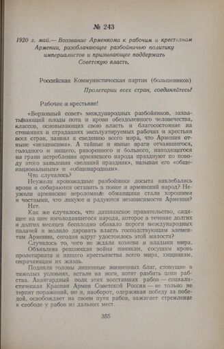 1920 г. май. — Воззвание Арменкома к рабочим и крестьянам Армении, разоблачающее разбойничью политику империалистов и призывающее поддержать Советскую власть