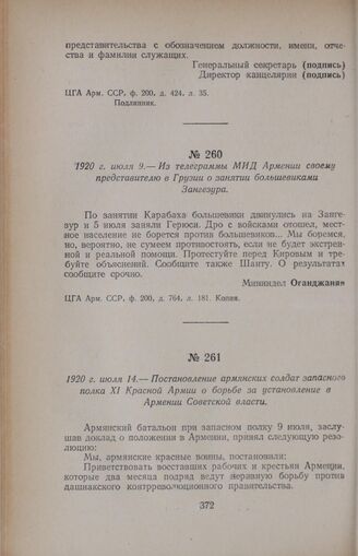 1920 г. июля 9. — Из телеграммы МИД Армении своему представителю в Грузии о занятии большевиками Зангезура