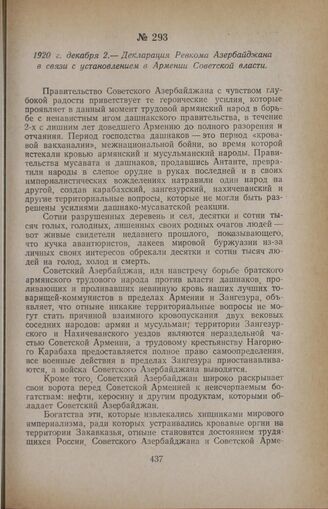 1920 г. декабря 2. — Декларация Ревкома Азербайджана в связи с установлением в Армении Советской власти