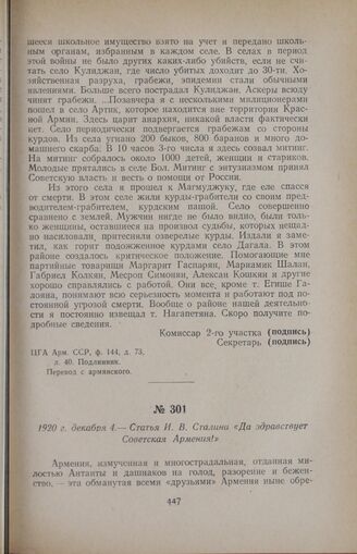 1920 г. декабря 4. — Статья И. В. Сталина «Да здравствует Советская Армения!» // И. В. Сталин, Соч., т. 4, стр. 414.
