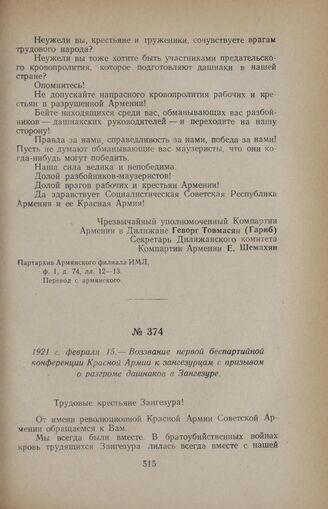 1921 г. февраля 15. — Воззвание первой беспартийной конференции Красной Армии к зангезурцам с призывом о разгроме дашнаков в Зангезуре