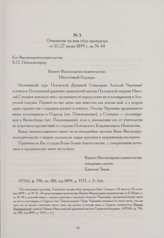 Отношение на имя обер-прокурора от 15/27 июня 1899 г. за № 44 // РГИА, ф. 796, оп. 180, год 1899, д. 3575, л. 3-3об.