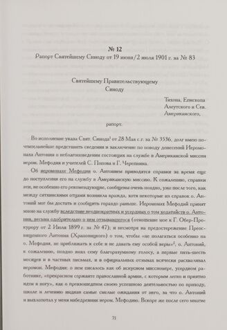 Рапорт Святейшему Синоду от 19 июня/2 июля 1901 г. за № 83. С.-Франциско // РГИА, ф. 796, оп. 182, год 1901, д. 3968, л. 7-10об.