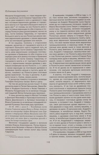 Челобитная гостя Семена Гаврилова царям Ивану и Петру Алексеевичам на новгородца Андрея Федорова сына Харламова и старорушан Ивана Васильева сына Тверя «с товарыщи» продолжающих не очищать Полисть реку от своих дров и очередная просьба о новом досмотре плотовых дров. 1692 г. июля 8 // ГИАНО. Ф. 717. Оп. 1. Д. 51. Л. 1-74.
