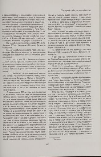 Явочная челобитная гостя Семена Гаврилова на иеромонаха Иверского монастыря старорусского вкладного двора казначея Кирьяка, задержавшего своей нерасторопностью варничные дрова челобитчика в реке Полисти. 1695 г. мая 13 // ГИАНО. Ф. 717. Оп. 1. Д. 51. Л. 1-74.