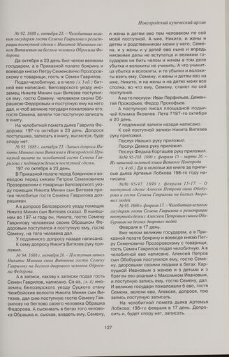 Запись допроса Никиты Минина сына Витязева в Новгородской Приказной палате по челобитной гостя Семена Гаврилова с подтверждением поступной сделки. 1688 г. октября 23 // ГИАНО. Ф. 717. Оп. 1. Д. 52. Л. 1-88об.