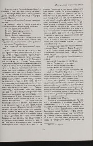 Поступная запись Афанасия Юрьева сына Никонова гостю Семену Гаврилову на вымененного у него беглого крепостного крестьянина Клима Васильева. 1690 г. февраля 13 // ГИАНО. Ф. 717. Оп. 1. Д. 52. Л. 1-88об.