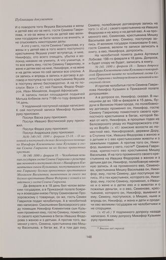 Челобитная великим государям гостя Семена Гаврилова о регистрации меновной и поступной сделок с Никифором Клементьевым сыном Кузьминым, поступившимся гостю Гаврилову беглым крепостным крестьянином Михаилом Васильевым, вымененным за своего же беглого крестьянина Ивана Федорова с семьей и хозяйством у гостя Семена Гаврилова. 1690 г. февраля 18 // ГИАНО. Ф. 717. Оп. 1. Д. 52. Л. 1-88об.